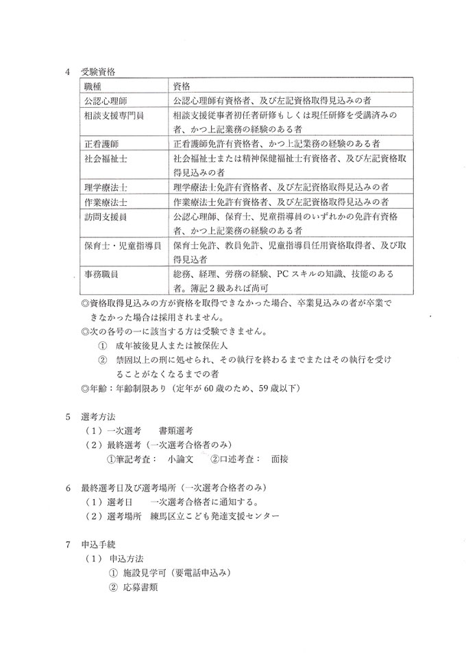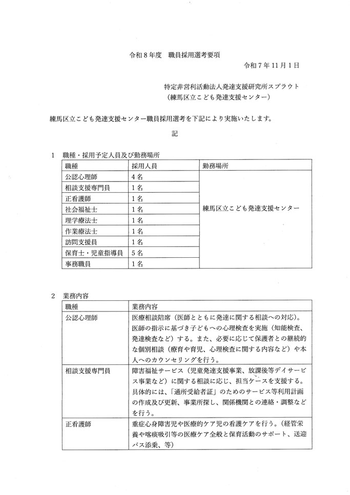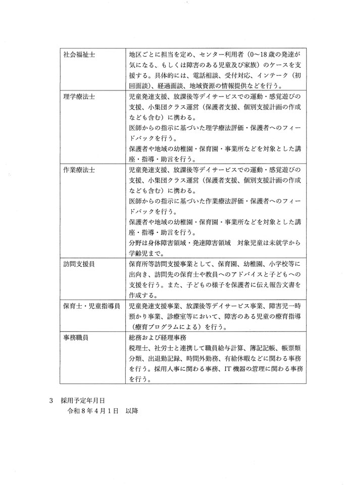 業務内容 医療相談陪席(医師とともに発達に関する相談への対応)を行う。